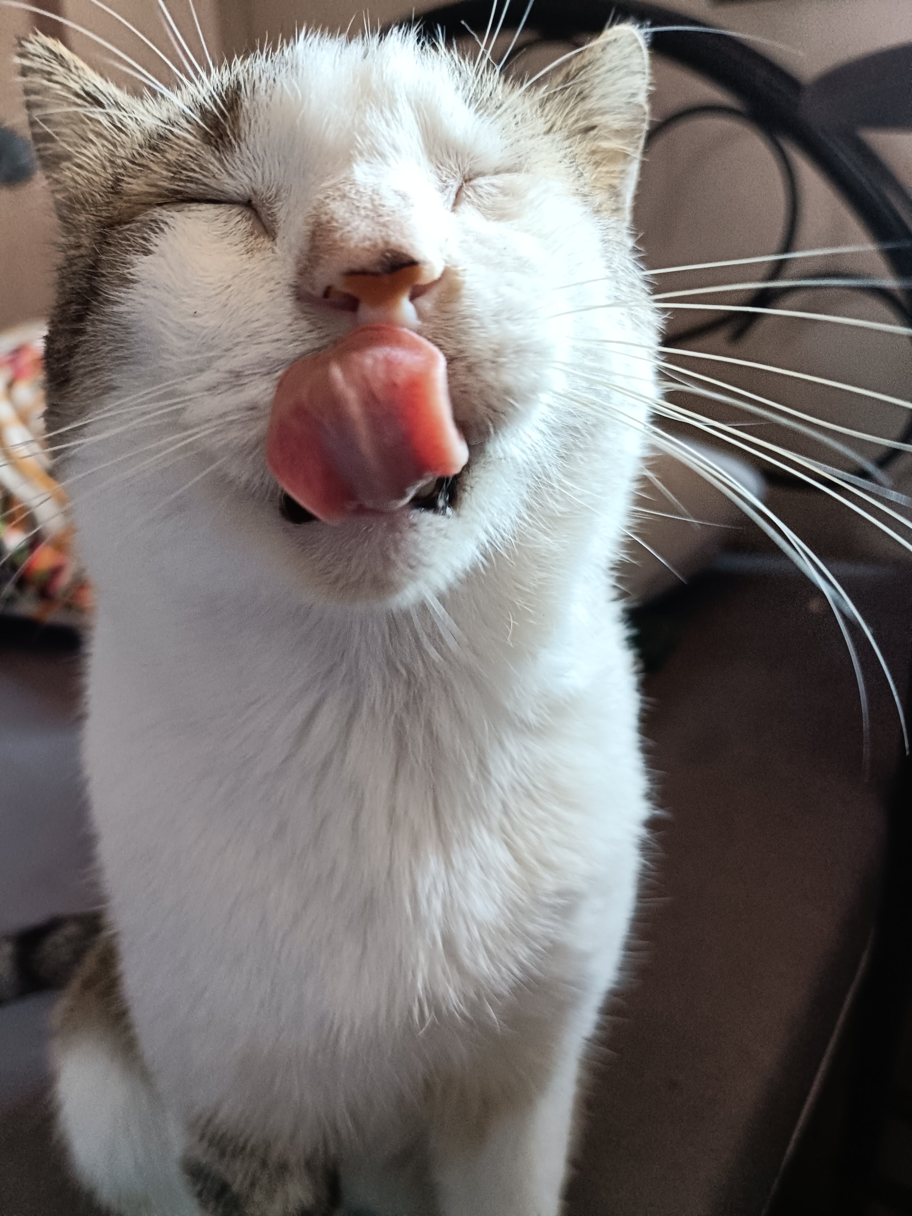 Hazel loves her cats very much, she treats her cats like they are her children. Hazel is definitely can take care of other cats, because she make sure that her babies (Cats) are happy and comfortable.